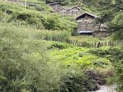 隨著海拔高度的升高與緯度的增加,一路上的植被類型也在不斷發(fā)生著變化。穿越深闊的暗針葉林,六匹馬起起落落的腳力踩出了一個馬幫的回音,所有的植物在各自的生命活動中散發(fā)出了清新怡人的芬多精,吉美為此小聲哼唱起了愉悅的歌兒,細聽卻又像是兩只云雀在不遠處鳴囀。再往上走,周遭的林木又轉(zhuǎn)換成了密致的高山杜鵑林,無數(shù)修長的木流蘇垂掛在樹枝上,像哈達。一路沉默的南杰轉(zhuǎn)頭來開始與我說話“六月間,這里的每一棵樹都開滿了粉白的花朵,一樹樹的煞是壯觀好看,我一個人經(jīng)過,總能聽到一朵、兩朵花鈍落的聲音。最初,我以為是馬雞飛落了,輕聲走入林中打探,身后又會落下一朵、兩朵花,那聲音厚重沉實,林中又過于安靜,我就慌忙走出了林子......”南杰說話聲音秀氣,我聽得時斷時續(xù),過風吹送著南杰話語中杜鵑花的香氣。前路逐漸敞亮起來的時候,路邊的杜鵑樹開始變得稀稀落落了,只見路旁堆壘著高高低低的新鮮柴垛。再往上就沒有樹木了,只有矮腳盤香和淺草,路邊的山包上緊貼著密密麻麻的貌似多肉植物的草葉,從草心抽出來一枝枝薔薇紅的花柱在風中頻頻點頭。雍貝在前方的馬匹上頭低得越來越沉,以為他瞌睡,我喊了聲貝,他回頭看我,面色灰白嘴唇有些發(fā)紫。南杰回望我們后一躍下馬,從路邊的淺草中折斷幾根盤香枝別在雍貝的耳際,說是可以抵御高反。剩余的兩根遞給我,細小的枝葉上積著一層薄薄地灰色粉塵,深嗅有松脂的清香氣味,安人心神。