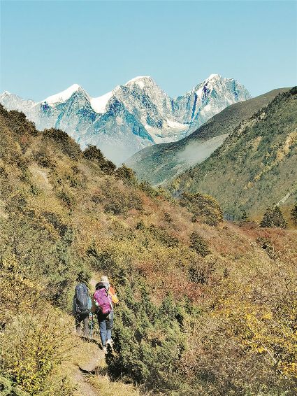 一般徒步線路需要三天完成,第一天從康定折多塘開始徒步,進(jìn)入毛家溝后一路緩上坡經(jīng)過美麗的荒野,下午就可以到達(dá)蘭尼巴埡口扎營(yíng)。第二天上到山脊觀貢嘎主峰以及衛(wèi)峰小貢嘎、嘉子峰、愛德嘉峰、日烏且峰、勒多曼因,還能看到雅拉雪山和美麗的云海金山。第三天原路返回,或經(jīng)木雅圣地去新都橋或翻過埡口去甲根壩,最推薦的是從蘭尼巴山脊繼續(xù)前行到達(dá)恩支漫希湖,沿雅哈埡口、桑恩措、冷嘎措、泉華灘、木居海、里索海、子梅村、貢嘎寺、巴王海,連接貢嘎穿越線,沿途的風(fēng)光更加動(dòng)人。