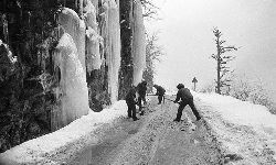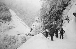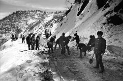 一九九七年十一月二十四日,連續(xù)多日大雪,把整個(gè)二郎山裹得嚴(yán)嚴(yán)實(shí)實(shí),白茫茫一片。陣陣山風(fēng)吹過(guò),大霧就像瀑布一樣,從山頂直往下翻涌?jī)A瀉。 一大早,州交通局打冰除雪排險(xiǎn)的干部職工就從二郎山管理站直奔山埡口。載有防滑砂的大貨車穿迷霧,繞山梁,向山頂埡口疾馳。由于氣溫太低,霧又大,車上的擋風(fēng)玻璃很快就結(jié)下了冰,路面打滑非常嚴(yán)重。前面車輛堵了起來(lái),排險(xiǎn)人員只好下車步行。 大霧彌漫,能見(jiàn)度很底,陰霾的天空又飄起了紛紛揚(yáng)揚(yáng)的雪花,剌骨的寒風(fēng)陣陣襲來(lái),只聽(tīng)見(jiàn)車蓬布在風(fēng)中“嗶剝”作響,卻看不見(jiàn)前面到底堵了多少車。排險(xiǎn)人員只好相互攙扶踩著冰滑的邊路艱難地向行。好不容易來(lái)到堵在最前面的車子面前。原來(lái)是一輛載著原木的東風(fēng)牌大貨車側(cè)滑在公路上,把整個(gè)公路堵死了。 局領(lǐng)導(dǎo)當(dāng)即指揮大家用鋼釬、鐵鎬和鋤頭處理冰道,沒(méi)有撮箕,大家借來(lái)加水桶裝運(yùn)冰雪……氣溫仍在急劇下降,剛從雪堆里刨出來(lái)的路,又被結(jié)起一層冰,就像地面上澆上了油,這就是冰雪道上有名的“桐油凌”。 有二位老同志不顧年老體弱,積極參與打冰除雪,一個(gè)在打冰時(shí),被彈起的冰碴把腦門劃了一個(gè)口子,鮮血直往外冒。有人想幫他包扎,他堅(jiān)決不干,自己就用手帕按住,把帽子向下拉蓋住傷口就算了。血從手帕中浸透出來(lái),與眉毛上的冰凌結(jié)在一起。氣溫太低,冰層太厚,十字鎬每挖一下,多數(shù)情況下也就是挖下一個(gè)白點(diǎn)而已。不一會(huì)兒,另一位老同志已是滿頭大汗,大家勸他休息一下,他卻說(shuō):趁著現(xiàn)在雪不是太大,早點(diǎn)把主道上的冰雪多除點(diǎn),過(guò)往二郎山的車輛就多一份安全。 排險(xiǎn)人員的手凍紅了,刨冰雪碰傷的指頭還流著鮮血,身上蒸發(fā)的熱氣,把衣領(lǐng)口、袖子口和褲子口結(jié)成了冰,可是,誰(shuí)也沒(méi)有吭一聲。 ……受堵車輛終于向前開(kāi)動(dòng)了。 風(fēng),越刮越猛,雪,越來(lái)越大。 防滑車在冰雪道上艱難地向前爬行著,車箱上面的職工們揮舞的洋鏟向路面撒著防滑砂。一路上風(fēng)絞雪,防滑車象一頭不聽(tīng)使喚的牛,顛簸、亂竄,好不容易才來(lái)到260(二郎山最險(xiǎn)處),對(duì)這里“桐油凌”路面進(jìn)行重點(diǎn)防滑處理后,防滑車又返回來(lái),開(kāi)始向山頂進(jìn)發(fā)……風(fēng)雪二郎山上打冰除雪、防滑排險(xiǎn),看似沒(méi)有驚天動(dòng)地的壯舉,身臨其景才知其艱難辛苦。難怪當(dāng)年每每經(jīng)過(guò)二郎山冰天雪地奇險(xiǎn)路段的車,都會(huì)向風(fēng)雪中屹立路邊的交通系統(tǒng)排險(xiǎn)保暢通的職工們鳴笛致敬,風(fēng)雪中的那份情彌足珍貴。 川藏線上的老司機(jī)傳下來(lái)一首傷心的順口溜:“車過(guò)二郎山,如闖鬼門關(guān),萬(wàn)幸不翻車,也要凍三天!”其險(xiǎn)峻實(shí)為罕見(jiàn),尤其是途經(jīng)二郎山260(公路公樁)處,曾被淡虎色變的人稱為“鬼招手”的險(xiǎn)路段。 1983年1月3日,有著安全行車44萬(wàn)公里記錄的一位駕駛員開(kāi)著輛嶄新的東風(fēng)牌貨車,同行還有兩名職工,夜行二郎山,在彌天大霧中神秘地“失蹤”了。十五天后,搜山的人才用望遠(yuǎn)鏡看到260公里路樁處的山崖下,有一塊汽車破篷布掛在樹(shù)枝,猶如招魂的凄厲幌幡在冷風(fēng)中招搖晃動(dòng)。鋼纜繩吊著搜山的人下到崖下400米深處的谷底。扒開(kāi)一座座雪堆,叫人汗毛倒豎:雪堆下,盡是廢大梁、爛車廂、銹車頭和支離破碎的汽車,足有一個(gè)汽車連!一輛不知埋了多久的卡車廂里牛肉已腐爛,駕駛室里坐著三具發(fā)黑的僵尸……其狀慘不忍睹!