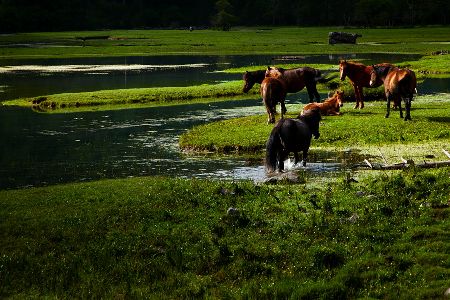 康定蓮花湖有純凈的陽(yáng)光、湛藍(lán)的天空、綠毯般的高山草甸、燦若繁星的野花、藍(lán)寶石般的高原湖泊、銀鏈般的溪流迂回盤旋、高大的康巴駿馬,還有在風(fēng)中獵獵飛舞的經(jīng)幡。