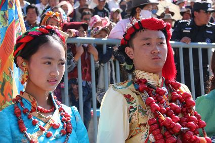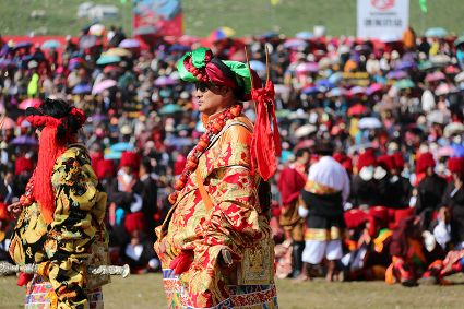 于是,年復(fù)一年,“漢子”與“花”兒們便挺拔、綻放在漢語表達的一個極點之上,被玄想,被渴望。對遠道而來的人們或是世代居于高原的子民而言,康巴漢子與康巴之花不僅僅是美的化身,通過康巴漢子與康巴之花的評比,人們在尋找一個早已失落卻又天然渾成的世界。