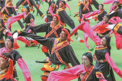 8月8日上午,康定北門體育場內(nèi)歌舞升平、彩旗飄揚,第九屆康巴藝術(shù)節(jié)開幕式文藝演出在此進行最后一次帶妝彩排。本次彩排也讓我們對開幕式文藝演出充滿了期待。