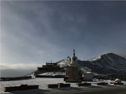 記得,離開甘孜縣城,前往滿金寺的那個早晨。同行的幾個人早早用過了早飯,趁著出發(fā)前僅有的一點時間,站在頂樓視野開闊的餐廳里,盼著太陽沖出來,直接把陽光大把大把地扔在大雪所覆蓋的一切事物上。天公作美,出發(fā)之前,太陽慷慨了一回。于是,一陣噼噼啪啪的快門聲響了起來,應和著寥寥餐廳里的某種空白。