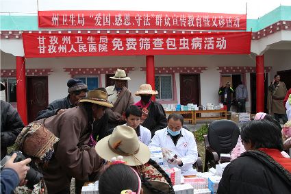 3月2日,國(guó)家在北京召開(kāi)了包蟲(chóng)病綜合防治工作領(lǐng)導(dǎo)小組會(huì)議,會(huì)議充分肯定了石渠縣包蟲(chóng)病綜合防治試點(diǎn)“兩抓、四管、六結(jié)合”經(jīng)驗(yàn)?zāi)J胶透骷?jí)干部職工“三千精神”,認(rèn)為“石渠縣各項(xiàng)工作順利推進(jìn),取得了明顯成效,總結(jié)了成功經(jīng)驗(yàn),創(chuàng)新了工 作模式?!敝醒腩I(lǐng)導(dǎo)同志還充分肯定我州包蟲(chóng)病綜合防治工作取得的成績(jī)。