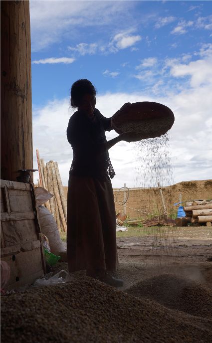 在道孚縣,攝影家們一到縣上,聽說區(qū)鄉(xiāng)已在等待,于是連水也顧不上喝一口,馬上冒雨驅(qū)車趕赴距離縣城10多公里的魯都新村,這是一座才從后山移民下來的新村,他們在山上由于交通不便,貧困已經(jīng)折磨了無數(shù)代人,今天,由于黨的扶貧政策,他們整村從高山遷到了山下,住進(jìn)了做夢也想不到的新居,過上了富裕的生活。當(dāng)大家走進(jìn)村民多吉絨布家時(shí),一家人正其樂融融的圍在藏桌前喝茶,藏桌的上方新貼著一幅習(xí)近平總書記的畫像,無言的表達(dá)了藏族人民對共產(chǎn)黨的感恩之情。這是一幅沒有人導(dǎo)演的場景,所有在場的攝影人都馬上投入了創(chuàng)作之中,一片快門聲,表達(dá)了攝影人此刻的心境。