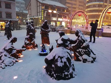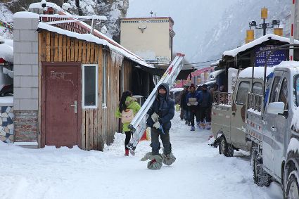“風(fēng)雨送春歸,飛雪迎春到。已是懸崖百丈冰,猶有花枝俏?!?月4日傍晚,大片大片的雪花,從昏暗的天空中紛紛揚(yáng)揚(yáng)飄落下來(lái)。霎時(shí)間,山川、河流、城市,全都籠罩在白蒙蒙的大雪之中。黃昏的雪,下得深切切的,好象有千絲萬(wàn)縷的情緒似的,又像海水一般洶涌,能夠淹沒(méi)一切,還有一絲揭開(kāi)藏頭露尾般的裸露感。雪花形態(tài)萬(wàn)千、晶瑩透亮,好象出征的戰(zhàn)士,披著銀色的盔甲,又像是一片片白色的戰(zhàn)帆在遠(yuǎn)航…… 落光了葉子的柳樹(shù)上,掛滿了毛茸茸、亮晶晶的銀條兒;冬夏常青的松樹(shù)和柏樹(shù),堆滿了蓬松松、沉甸甸的雪球。那一片雪花在空中舞動(dòng)著各種姿勢(shì),或飛翔,或盤旋,或直直地快速墜落,鋪落在地上?!昂鋈缫灰勾猴L(fēng)來(lái),千樹(shù)萬(wàn)樹(shù)梨花開(kāi)”——這是雪的燦爛;一場(chǎng)瑞雪,扮美了康定,年味籠罩的康定城,嫵媚妖嬈。無(wú)論是背水姑娘、有著年味兒的將軍橋,還是大紅燈籠高高掛的康定門,都在雪后別有一番景致。與美景合影、和朋友玩雪都是最佳選擇。在風(fēng)雪中,交警不畏嚴(yán)寒默默堅(jiān)守崗位 ,指揮交通疏堵保暢。他們的身影在皚皚風(fēng)雪路上站成一道道最美的風(fēng)景,溫暖了康定。從早上六點(diǎn)開(kāi)始,康定的環(huán)衛(wèi)工就迎著刺骨的寒風(fēng),開(kāi)始了除冰雪保通暢的行動(dòng),在積雪覆蓋的康定城,早起的商販樂(lè)呵呵地做起了買賣;民工迎著雪后的寒風(fēng)出門務(wù)工,他們是最可敬的人。