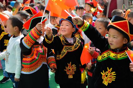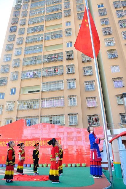 “六一”前夕,我肩挎相機走進了熱鬧非凡的九龍縣二幼,他們正在舉行“我們在一起”文藝活動。活動一開始,幾個四五歲的小小升旗手,身著民族服裝在老師的口令下莊重地走上旗臺,在激昂的國歌聲中,國旗在他們手中冉冉升起,全場行注目禮。這場景令我感動不已,國家強盛,人民安康,孩子們在溫暖的陽光下茁壯成長。