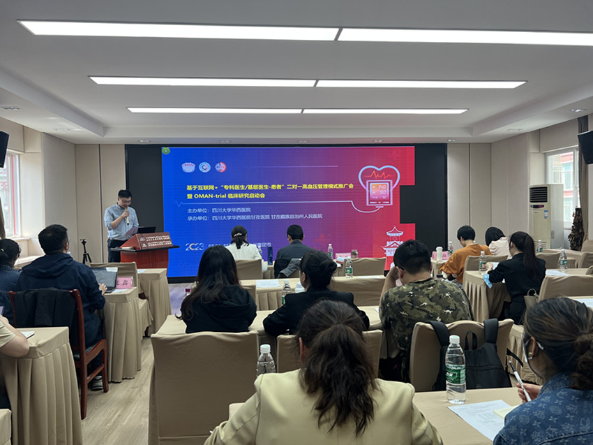 本網(wǎng)訊 7月1日,由四川大學(xué)華西醫(yī)院主辦、四川大學(xué)華西醫(yī)院甘孜醫(yī)院承辦的基于互聯(lián)網(wǎng)+“??漆t(yī)生/基層醫(yī)生——患者”二對一高血壓管理模式推廣會(huì)暨OMAN-trial臨床研究啟動(dòng)會(huì)在康定舉行,來自四川大學(xué)華西醫(yī)院的專家們以學(xué)術(shù)講座與探討的形式,圍繞高血壓管理新模式和OMAN-trial臨床研究等相關(guān)內(nèi)容進(jìn)行詳細(xì)深入的探討,為廣大醫(yī)師帶來了一場豐富精彩的學(xué)術(shù)盛宴。