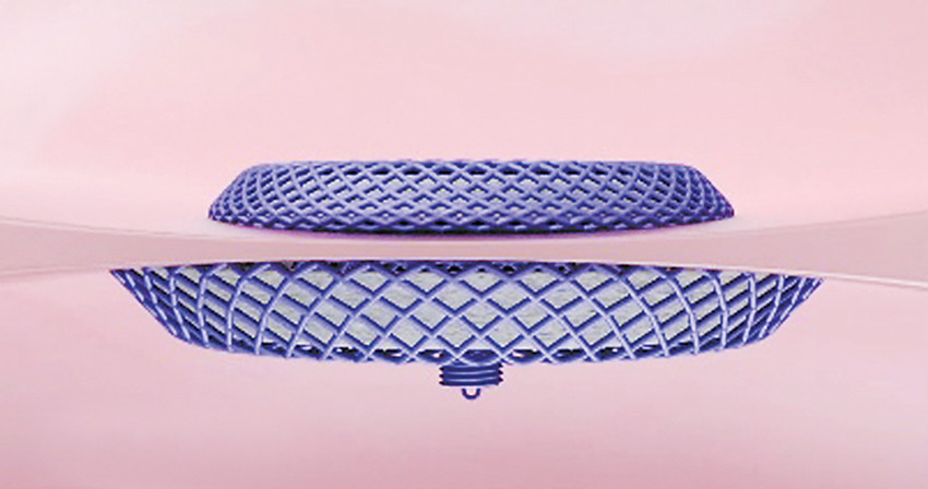 既然有了“孔”,就得想辦法“堵”。生物可降解卵圓孔封堵器由一大一小2個(gè)內(nèi)凹狀的“圓盤(pán)”連接在一起,細(xì)看呈蜂窩狀,就像一個(gè)“塞子”,牢牢扣住左右心房的“墻壁”。