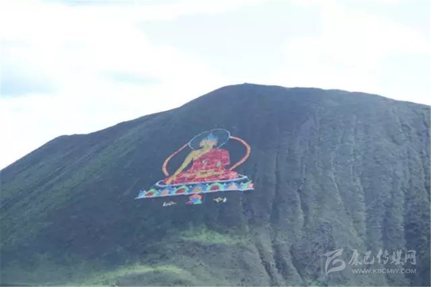 看,佛主正在向我們微笑,這尊巨大的佛像是由然梯寺的活佛使用4萬根經(jīng)幡,在沒有使用任何輔助工具的情況下花費一個月的時間創(chuàng)作而成。每當風吹過,大佛就會隨風飄舞。就如同在向四面八方散發(fā)佛光一樣。