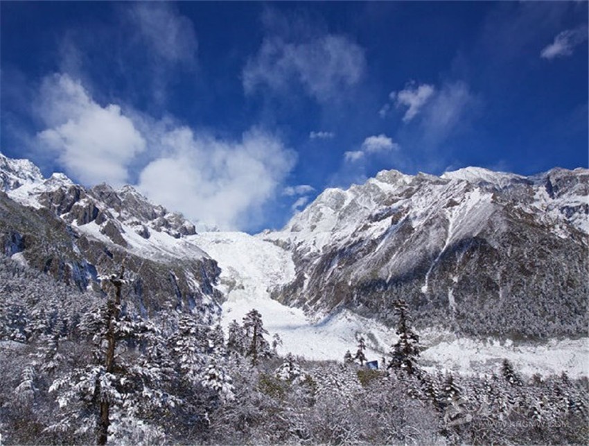 冬天的海螺溝,冰雪飛舞,晶瑩剔透;千姿百態(tài)的冰掛,潔白無瑕,一塵不染的霜雪,使人恍若置身于美妙的童話世界。海螺溝冬天其間的美,已是難以用語言描述。