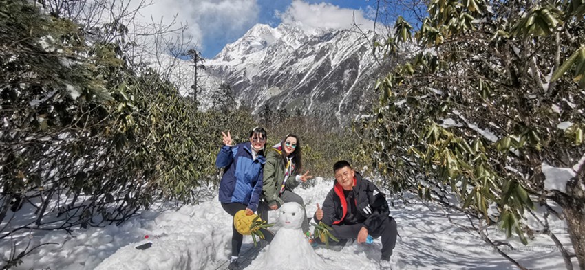 今年春節(jié)期間,我州A級(jí)旅游景區(qū)共接待游客10.96萬(wàn)人次,實(shí)現(xiàn)門(mén)票收入319.86萬(wàn)元。圖為游客在海螺溝景區(qū)盡享冬日樂(lè)趣。