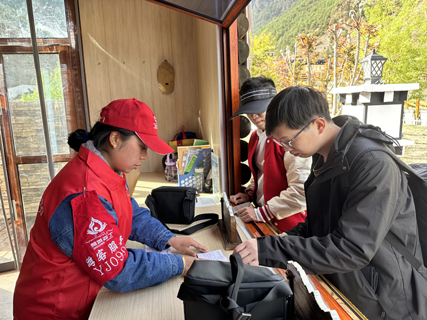 “我們?yōu)橛慰吞峁┞糜巫稍?、線路指引、文明旅游勸導、發(fā)放宣傳折頁等服務,同時還幫助游客在手機App、互聯(lián)網(wǎng)預訂酒店,規(guī)劃旅游線路,寄存包裹等,讓游客感受到亞丁景區(qū)是有溫度、有人情味的旅游目的地?!薄拔逡弧逼陂g稻城亞丁景區(qū)志愿者四郎曲初告訴記者。