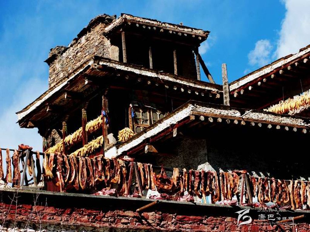 嘉絨藏族年到來之前幾天,丹巴藏寨格外耀眼美麗。寨房的主人們都依照傳統(tǒng)習(xí)俗,以當(dāng)?shù)氐?ldquo;白泥巴”為主要原料,通過配方煎制成白色染料,精心涂染寨樓墻面,并用白灰在墻面上繪畫出天、地、日、月、星和各種動(dòng)物圖案和宗教圖案,使整個(gè)藏寨披上潔白的盛裝。每年冬月12日就到了嘉絨藏族年大年三十,這天,山寨家家戶戶面滿柜、酒滿壇、水滿缸、柴滿棚,歡歡喜喜過迎新年;宰殺肥豬腌制香豬腿、制作豬膘,擺上酒席、跳上鍋莊祝福新年。