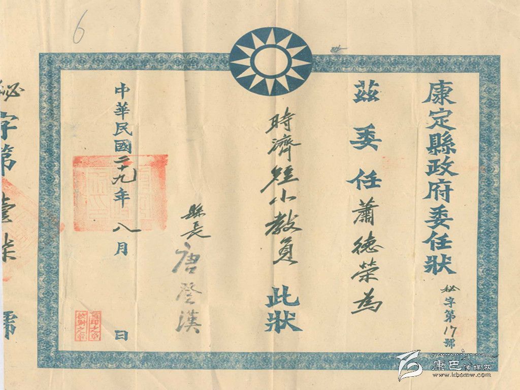 當局發(fā)給教師的委任書。