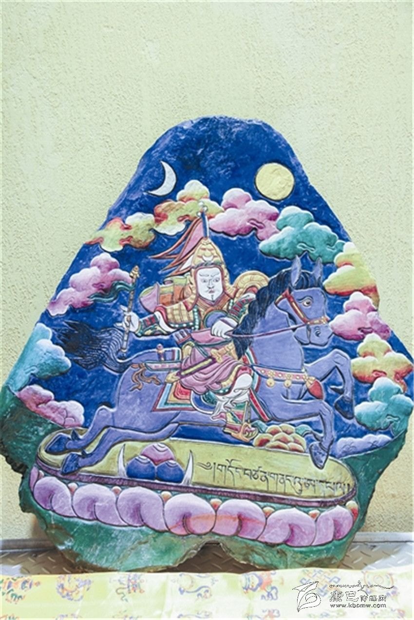 據(jù)了解,格薩爾彩繪石刻是藏族民間美術(shù)中的一門創(chuàng)新藝術(shù),它不僅是格薩爾文化的一種新的傳承方式,也填補(bǔ)了格薩爾文化在藏族石刻中的空白。格薩爾彩繪石刻刀法精細(xì),取材考究,在采用鑿刻、直刻、斜刻刀法的同時(shí),注重磨刻、磨劃技術(shù)效果,使石刻畫構(gòu)圖和諧。在石刻畫上采用了彩繪工藝,這樣既增加了畫面視覺(jué)的藝術(shù)感和光澤度,又可以起到保護(hù)作用。