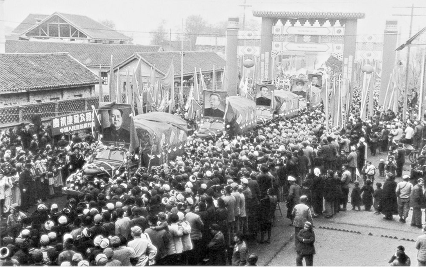 1954年12月25日,3000多名各族群眾在康定隆重集會(huì),慶祝川藏公路(康藏公路)通車典禮現(xiàn)場(chǎng)。