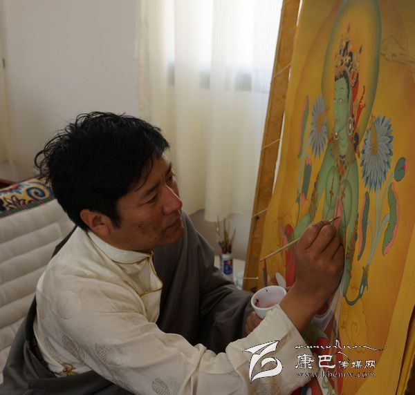 寶劍鋒從磨礪出,梅花香自苦寒來。歷經(jīng)十余年的打拼與磨礪,他結(jié)合當(dāng)今唐卡藝術(shù)的發(fā)展變化,融合各家之長(zhǎng),在唐卡創(chuàng)作中逐漸形成了自己的風(fēng)格,一種被稱為“多派”唐卡的新唐卡很快進(jìn)入了人們的視野。