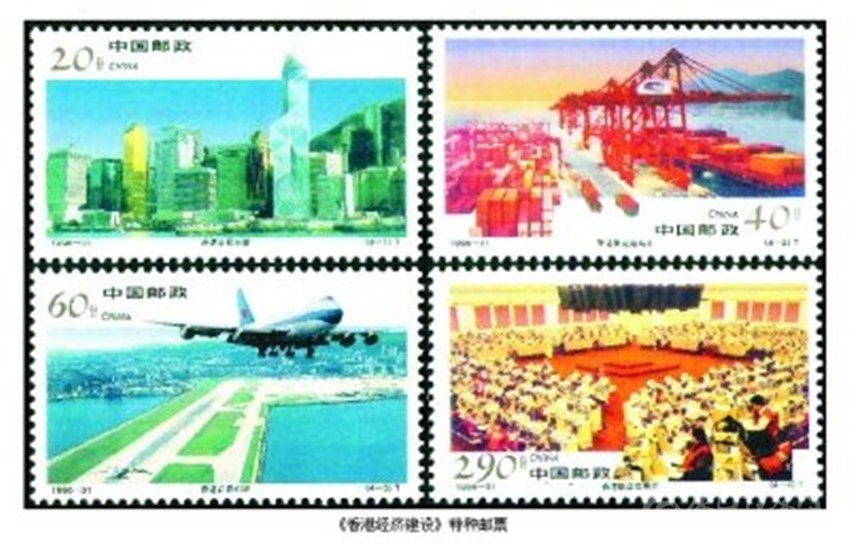 在香港回歸祖國的進程中,為了讓全國和世界人民認(rèn)識香港,了解香港,我國相繼發(fā)行了兩套介紹香港風(fēng)光名勝和經(jīng)濟建設(shè)的特種郵票。1995年11月28日,我國發(fā)行《香港風(fēng)光名勝》特種郵票,全套4枚。圖案分別為“維多利亞港灣”“中環(huán)廣場”“文化中心”和“淺水灣”;1996年12月19日發(fā)行《香港經(jīng)濟建設(shè)》特種郵票,全套4枚。圖案分別為“香港中銀大廈”“香港集裝箱碼頭”“香港啟德機場”和“香港聯(lián)合交易所”。