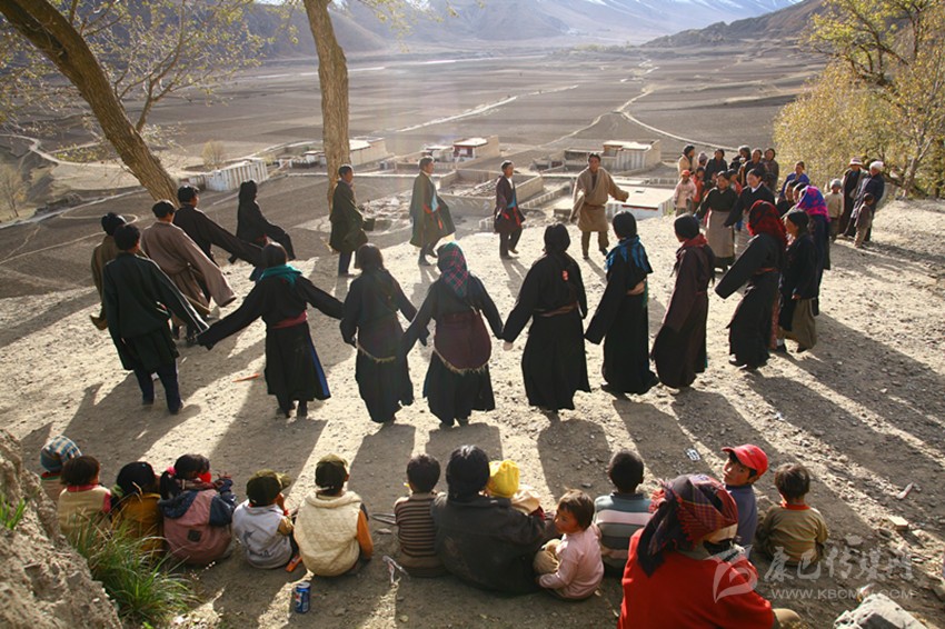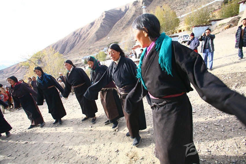 弦子又名為“協(xié)”,在甘孜縣境內(nèi)有孔薩協(xié)欽、仲薩協(xié)、格達協(xié)、郎扎協(xié)等,其中白利寺五世格達活佛創(chuàng)建于二十世紀三、四十年代的格達弦子尤為著名,跳此舞無時間規(guī)定。起初用此歌祭祀亡魂、超度靈魂、免荒災。以后逐漸豐富其內(nèi)容而流傳于民間。表演時無伴奏樂器,起舞時,男女兩隊輪歌共舞,圍成圓圈,相對而立,男女舞者統(tǒng)一著樸素藏裝,男舞者抬頭,頭戴金氈帽, 身著“氆氌”衣,但不配戴腰刀;女舞者低頭,扎小辮子,身著“氆氌”衣,腳穿藏鞋,沿著弧線,先慢后快,邊歌邊舞,舞蹈的腳步動作矯健,帶有“夏卓”的風韻。格達活佛的詩歌,具有藏族文學的新內(nèi)容和新思想,每當節(jié)日人們就在優(yōu)美的旋律中盡情起舞,格達弦子的詞、曲均由格達活佛創(chuàng)作。
