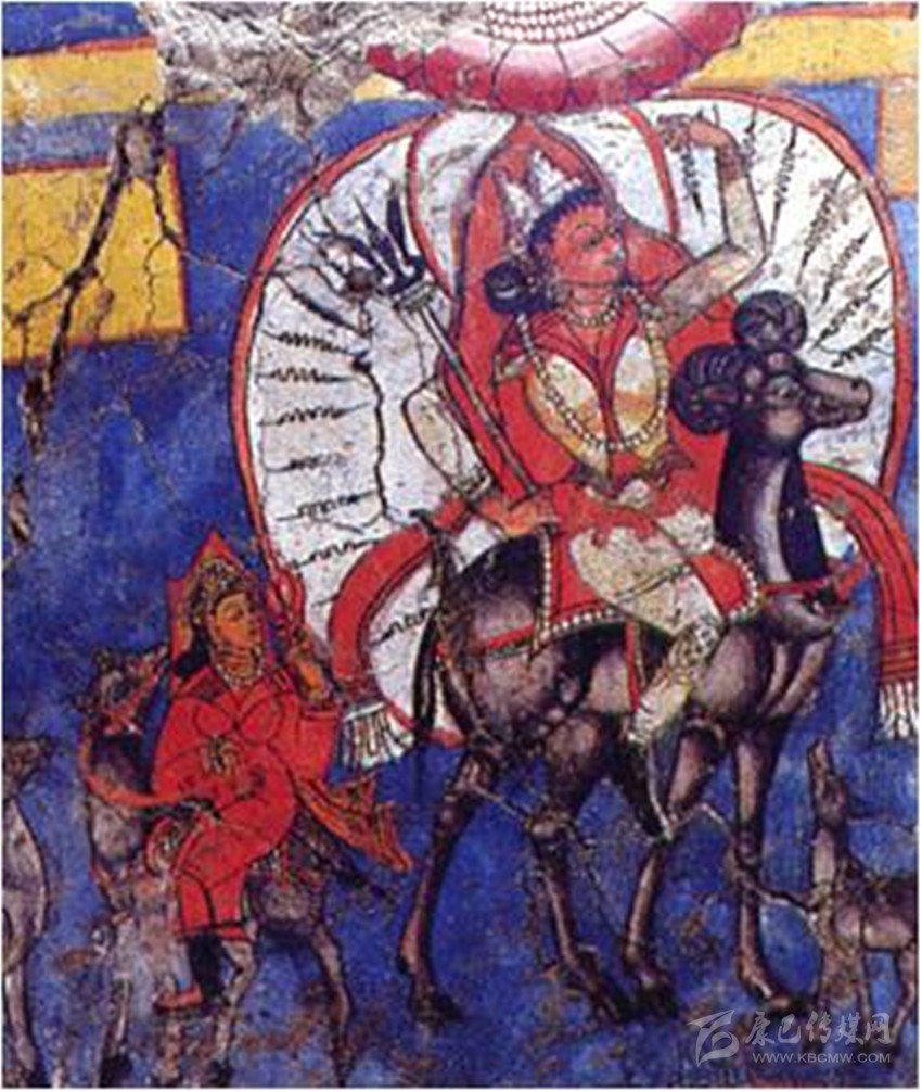 《騎羊女神》托林寺壁畫(huà)局部(公元十一世紀(jì))。