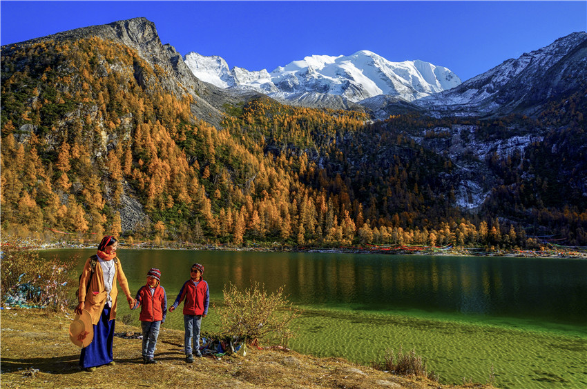這里所說(shuō)的跨越性是從時(shí)間和空間二維角度來(lái)講的。藏傳佛教中講輪回,在這種宗教觀念的影響下,宇宙之輪循環(huán)往復(fù),時(shí)間序列中過(guò)去、現(xiàn)在、未來(lái)永恒循環(huán),時(shí)間在空間中的綿延不會(huì)影響和區(qū)別生命的自在狀態(tài)。龍仁青小說(shuō)在時(shí)間的跨越中體現(xiàn)藏文化的一脈傳承,《巴桑寺的C大調(diào)》里民國(guó)山灣巴桑寺的太陽(yáng)“依舊蹲坐在西山頂上,有著持重老成的高僧大德一般的莊重和平靜”,《鳥巢》中當(dāng)下曲果小鎮(zhèn)的太陽(yáng)“就像是一個(gè)深諳人生世事,有著豐富閱歷的老人,沉穩(wěn)而又粗然”。民國(guó)時(shí)期美國(guó)植物學(xué)家麥迪到巴桑寺拜謁神樹“拉香秀巴”,采集植物標(biāo)本;時(shí)光輪轉(zhuǎn)《綻放》里漢藏雙語(yǔ)寄宿小學(xué)的次洛在查美河岸草原尋找雪蓮和槐花,尋訪阿奶郎洛妮幽深的身世。上世紀(jì)70年代盛夏巴桑寺僧人久美身后姑娘的歌聲,幾十年后查美河岸次洛聽阿奶郎洛妮的吟唱。小說(shuō)中時(shí)間跨度近一個(gè)世紀(jì),但藏族人對(duì)青藏高原富有山川地貌罕見的地理的情感與瑰麗的審美想象沒(méi)有變,對(duì)幽密深切滴愛情意蘊(yùn)的表達(dá)和書寫沒(méi)有變。