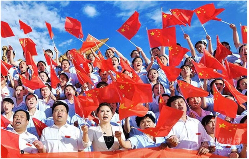 56個民族唱響紅歌。五星紅旗,你和太陽一同升起,升起一個令世界矚目的高度。14億人民,56個民族殷殷的祝福,匯入載歌載舞的歡騰,所有的中華兒女喜上眉梢,喜也燦爛!