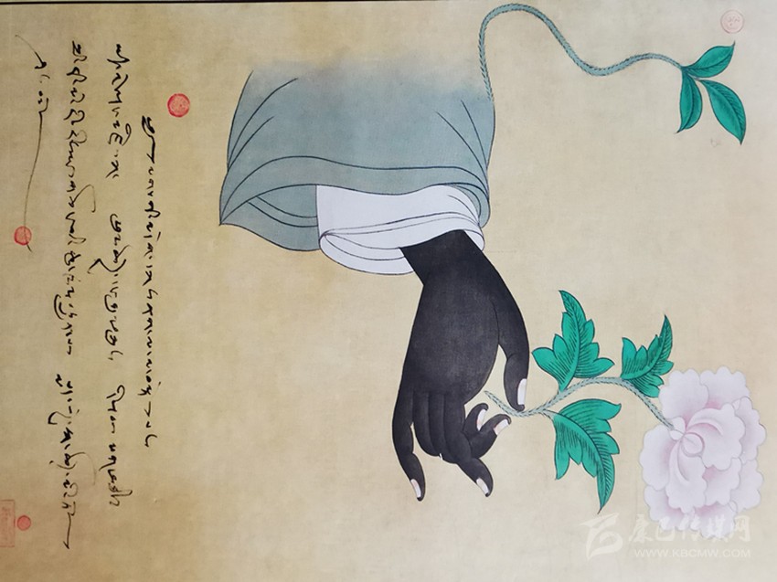 按照耷·瓊培所說,本文開頭提到的那副唐卡畫也有著特殊的意義。據(jù)了解,該幅唐卡畫名為《紅黑白》,整幅畫旨在表達無所謂手腕的黑白,艷麗與秀雅,完美與尊崇,源自手心的花莖就會被潔凈的細流滋養(yǎng),最終盛開蓮花簇簇。
