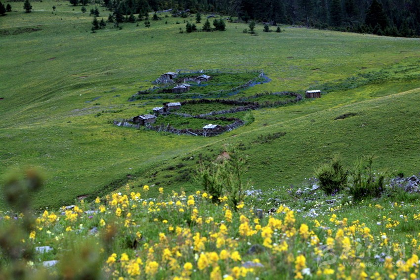 在雅江縣城西邊約60公里處,有一處山水秀麗的地方,由于遠(yuǎn)離公路,這地方一直“養(yǎng)在深閨人未識(shí)”。自然風(fēng)光格外秀麗姑且不說(shuō),只說(shuō)那處地名為“郭崗頂”的、地形如“蓮花寶座”的山谷草壩上,緊靠一塊圓圓的叫做“太陽(yáng)”、另一塊彎彎的叫做“月亮湖”的兩個(gè)湖泊旁,有一處龐大的古建筑群遺址赫然入目,讓人驚嘆不已。不遠(yuǎn)處,一座已有600多年歷史的“郭沙寺”,也好像是在守望著不遠(yuǎn)處這群讓人遺忘的古舊破敗的建筑。