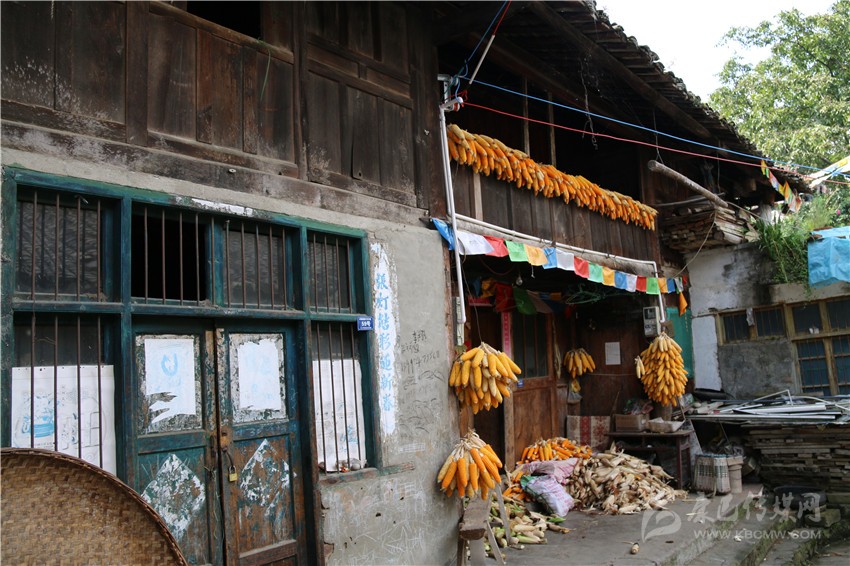 “這算是原生態(tài)的土司房了”,穿過小道,董老指著一間木板房;“是的,不過它的危險(xiǎn)系數(shù)很高。”余華應(yīng)道。近看,門窗屋檐做工精細(xì),散發(fā)著古樸感,但也不難發(fā)現(xiàn)屋身的“補(bǔ)丁”;后退兩步觀望,整個(gè)屋身稍傾斜,是典型的危房。繼續(xù)行走,是泥土和木板結(jié)構(gòu)的房屋,這也是上衙門遺址最后一站。據(jù)董老講述,這里是土司老爺審人的地方,犯人就跪在門坎的大石階上。不過,金黃玉米與鋼筋門窗的出現(xiàn),很難讓人想象土司老爺在該地審案的景象。