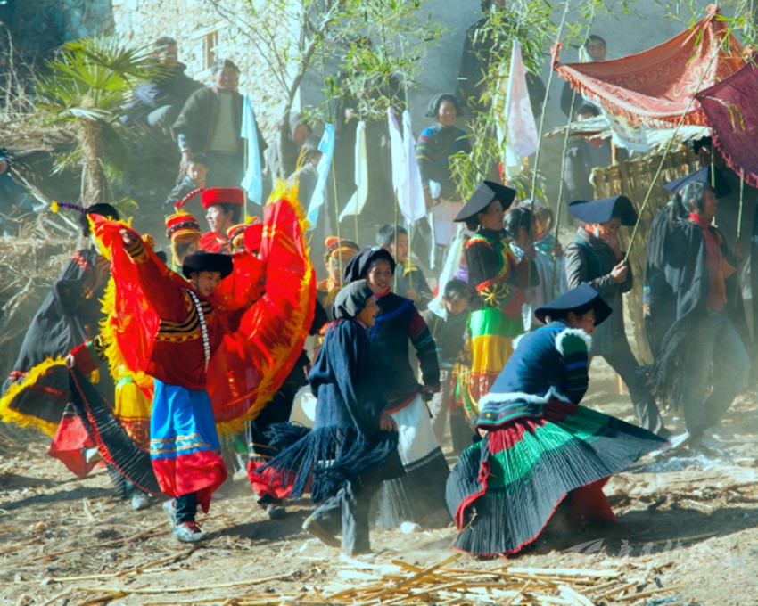 去年春節(jié)前夕,我就要和戀愛已久的尼坡烏各莫結(jié)婚了。這天,天朗氣清,喜鵲喳喳。爛堡子的親戚們來了,陰山隊的朋友們來了,體壯彪悍的小伙們來了,身著彩裙、婀娜多姿的姑娘們來了。于是在我家屋里門外到處都是親朋好友。他們有的在殺豬宰羊,準備婚慶上的喜宴,有的幫著打掃房前門后的灰塵,有的在抽煙喝酒……總之,整個小小的山寨充滿著濃濃的喜慶氣氛。我喜滋滋、樂呵呵,帶著抑制不住的喜悅對客人們又是招呼又是斟酒倒茶。