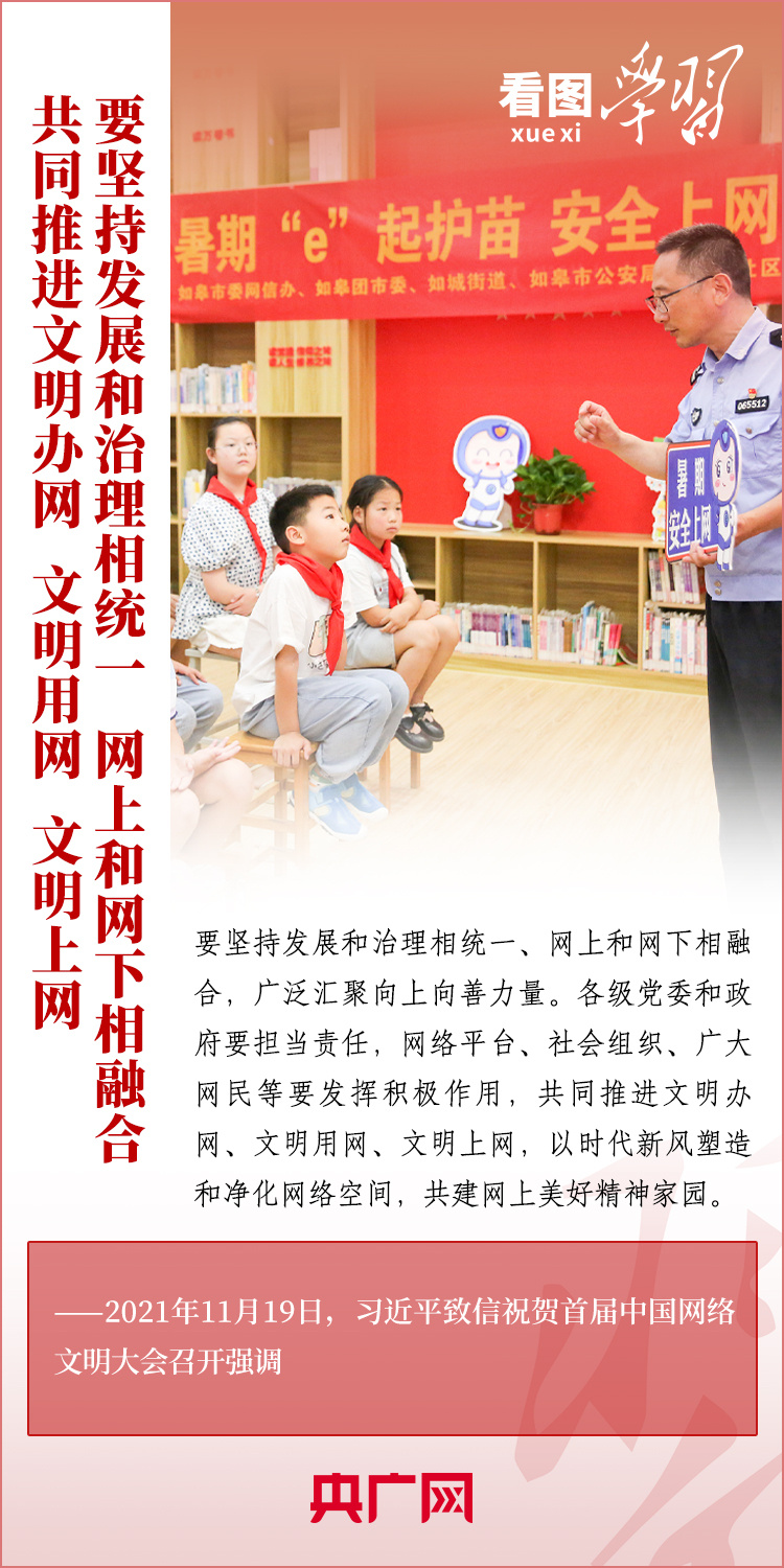 “堅(jiān)持發(fā)展和治理相統(tǒng)一、網(wǎng)上和網(wǎng)下相融合,廣泛匯聚向上向善力量”“共建網(wǎng)上美好精神家園”。習(xí)近平總書記格外重視網(wǎng)絡(luò)空間這一億萬民眾共同精神家園的建設(shè),圍繞網(wǎng)絡(luò)文化和網(wǎng)絡(luò)強(qiáng)國建設(shè)作出了一系列重要深刻論述。