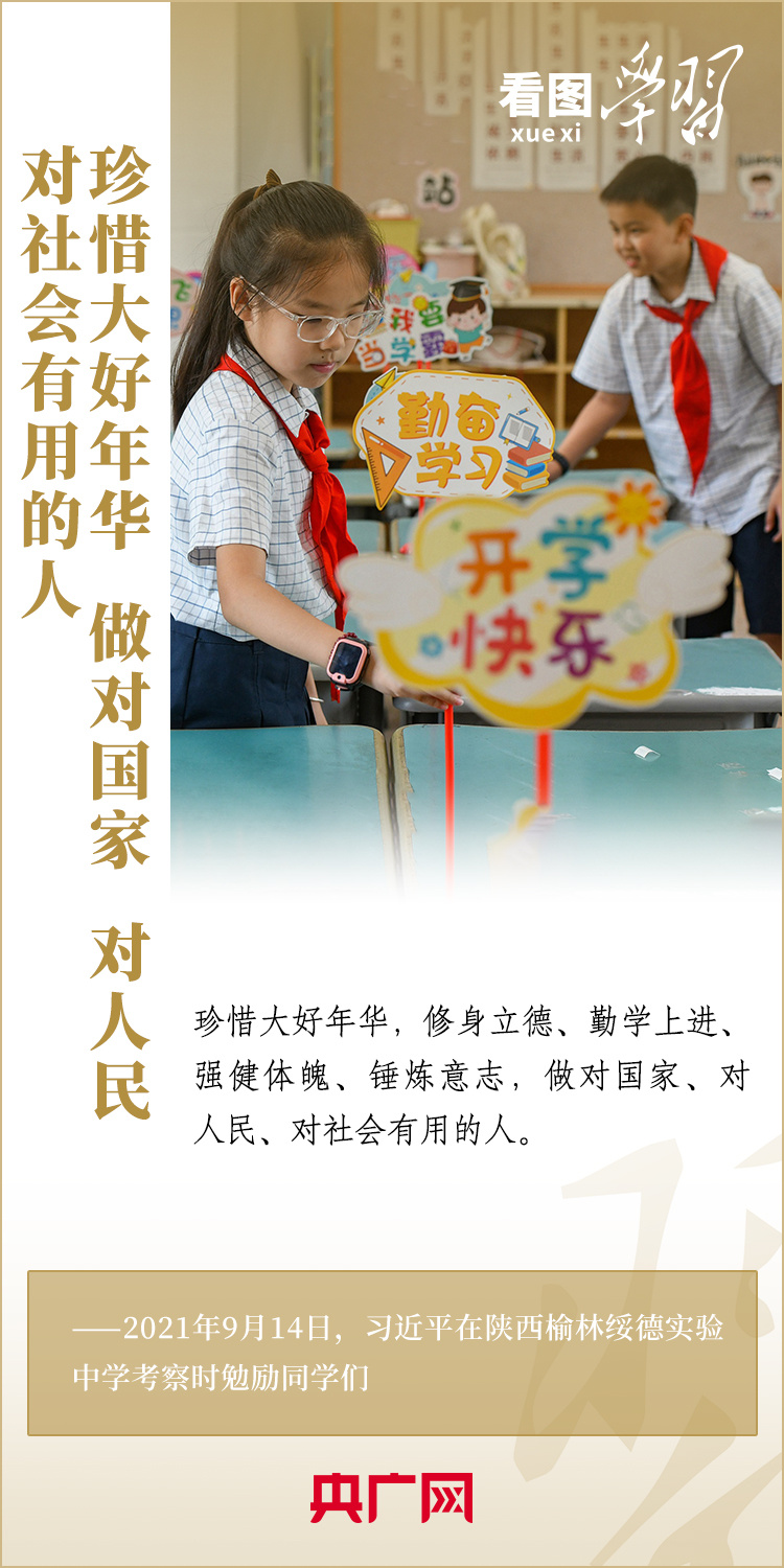 “少年兒童是祖國的未來。”一直以來,習(xí)近平總書記高度重視和關(guān)心青少年的健康成長。每每走到校園和學(xué)生們中間,總書記總會與他們談學(xué)習(xí)、談理想、談成長,鼓勵他們努力為自己贏得人生出彩的機(jī)會,做對國家、對人民、對社會有用的人。又是一年開學(xué)季,讓我們一起重溫總書記對莘莘學(xué)子的殷切期望。一起來學(xué)習(xí)!