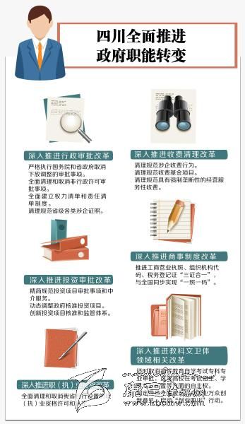 據(jù)悉,四川各項(xiàng)改革將從“重?cái)?shù)量”向提高“含金量”轉(zhuǎn)變,推動(dòng)行政審批制度改革,簡化投資審批,實(shí)現(xiàn)“三證合一”、“一照一碼”,全面清理并取消一批收費(fèi)項(xiàng)目和資質(zhì)資格認(rèn)定。加快行政權(quán)力清單制度建設(shè),推進(jìn)行政權(quán)力依法規(guī)范公開運(yùn)行。