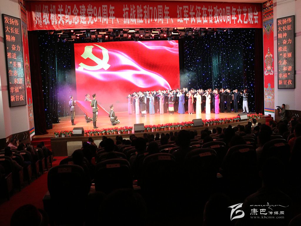 本網(wǎng)訊(記者 宋志勇 文/圖)6月30日晚,由州直屬機(jī)關(guān)工委和州民族干部學(xué)校聯(lián)合主辦的州級機(jī)關(guān)紀(jì)念建黨94周年、抗戰(zhàn)勝利70周年、紅軍長征在甘孜80周年文藝晚會在康定劇場演出。州領(lǐng)導(dǎo)李康、相洛、白蘇英、何飚、周冬秀、蔣秀英、孫飛以及甘孜軍分區(qū)領(lǐng)導(dǎo)等觀看了演出。