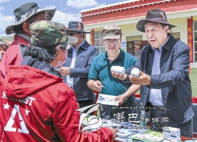 調研中,于康震一行還在色須鎮(zhèn)開展的包蟲病科技下鄉(xiāng)活動現(xiàn)場,向前來咨詢的農牧民群眾發(fā)放宣傳資料和驅蟲藥品。他對群眾們說,今天我們來這里送知識、送物資、送藥品、送技術,目的就是為了更好地防控包蟲病。包蟲病能否控制住,關鍵取決于廣大農牧民群眾,大家如果能按照防控知識和技術去做,包蟲病防控工作就成功了一大半。
