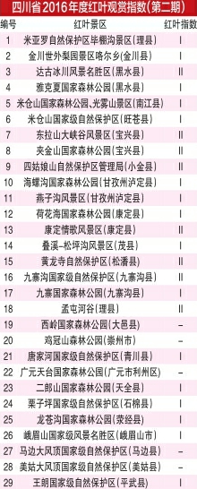 整個(gè)紅葉觀賞季期間,由省林業(yè)廳、省旅游局指導(dǎo),省生態(tài)旅游協(xié)會(huì)監(jiān)測(cè)的紅葉觀賞指數(shù)將持續(xù)發(fā)布。每周四,華西都市報(bào)將每周發(fā)布一期“紅葉指數(shù)”。在10月19日四川省林業(yè)廳發(fā)布的第二期紅葉觀賞指數(shù)中可以看到,理縣孟屯河谷、達(dá)古冰川、四姑娘山、九寨黃龍等9個(gè)點(diǎn)位都達(dá)到Ⅱ級(jí)紅葉觀賞指數(shù)。較之上周,更多點(diǎn)位的葉子開(kāi)始進(jìn)入適宜觀賞期。紅葉巔峰期近在眼前。