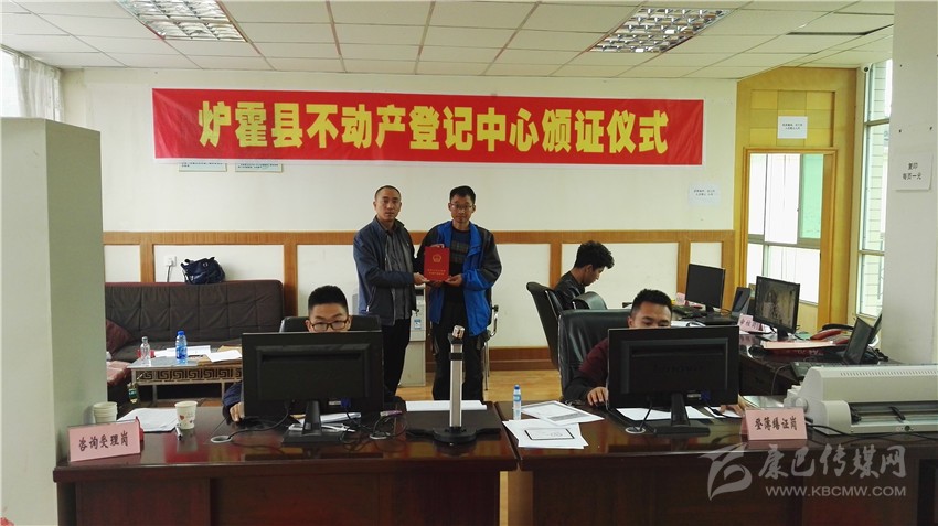 圖為我州爐霍縣頒發(fā)首張不動(dòng)產(chǎn)登記證。(州國土資源局 供圖)