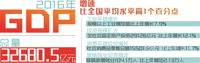 本網(wǎng)訊(記者 陳巖 梁現(xiàn)瑞 李龍?。?/span>1月22日,省政府新聞辦召開新聞發(fā)布會(huì),發(fā)布2016年經(jīng)濟(jì)數(shù)據(jù)。經(jīng)國家統(tǒng)計(jì)局審定,2016年全省實(shí)現(xiàn)地區(qū)生產(chǎn)總值(GDP)32680.5億元,按可比價(jià)格計(jì)算比上年增長7.7%,增速比全國平均水平高1個(gè)百分點(diǎn)。全省經(jīng)濟(jì)運(yùn)行呈現(xiàn)總體穩(wěn)定、穩(wěn)中有進(jìn)、穩(wěn)中有好的發(fā)展態(tài)勢,實(shí)現(xiàn)“十三五”良好開局。