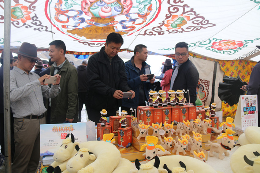 色拉鄉(xiāng)村旅游綜合體內(nèi)展示的稻城文創(chuàng)產(chǎn)品引來(lái)眾多參會(huì)者圍觀。