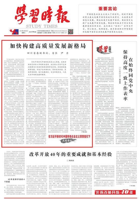 編者按:8月8日,《學(xué)習(xí)時(shí)報(bào)》頭版頭條“在習(xí)近平新時(shí)代中國特色社會主義思想指引下”欄目刊載四川省委副書記、省長尹力的署名文章《加快構(gòu)建高質(zhì)量發(fā)展新格局》,本網(wǎng)今日予以轉(zhuǎn)載: