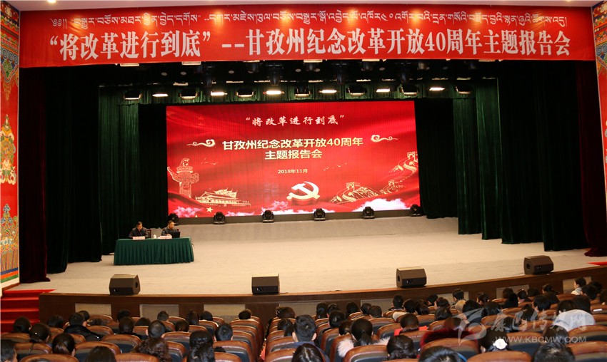 本網(wǎng)訊 昨(21)日上午,由州委宣傳部主辦的我州慶祝改革開放40周年“將改革進行到底”主題報告會在康定劇場舉行。來自州委各部委、州政府各部門、省州屬行政企事業(yè)單位以及康定市機關(guān)干部職工代表共計500余人聆聽了報告。