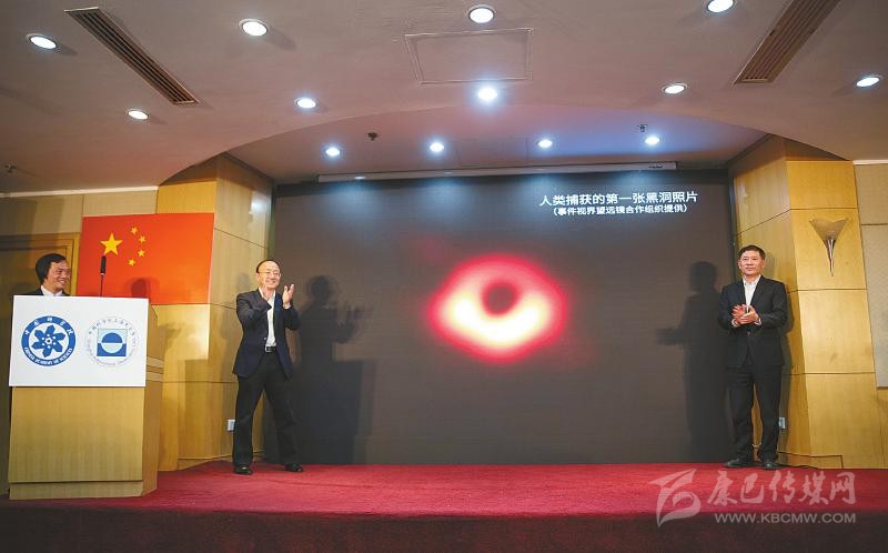 4月10日,中國科學(xué)院上海天文臺舉行新聞發(fā)布會,為人類史上首張黑洞照片揭幕。新華社記者 金立旺 攝