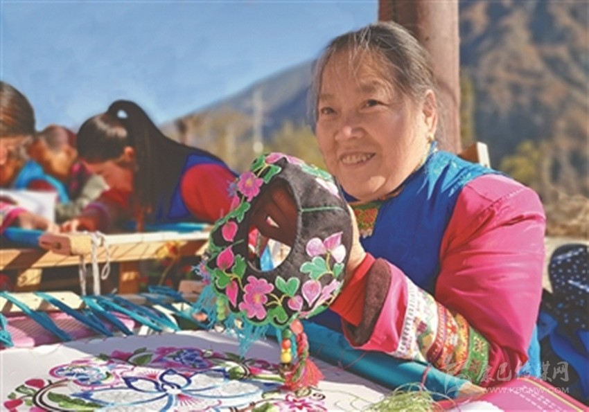 藏族繡娘高永輝展示繡品。圖片由本網資料庫提供