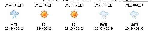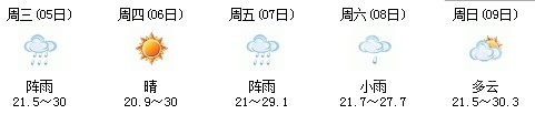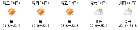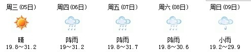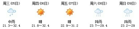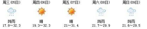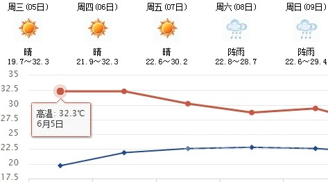 雖然明天太陽有點兇,但7日、8日、9日三天陣雨及時出現(xiàn),日最高氣溫穩(wěn)定在30℃附近。