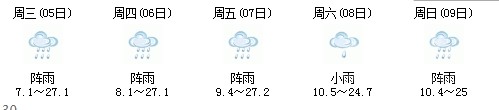 5日開始一直到9日都是多云到晴的天氣,日最高氣溫27℃左右。每天都有陣雨(小雨),考生出行應(yīng)防山地災害。