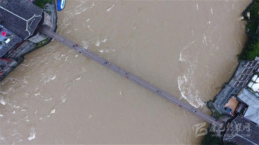 7月27日,游客行走在四川瀘定縣瀘定橋上(無(wú)人機(jī)拍攝)。新華社發(fā)(王曦 攝)