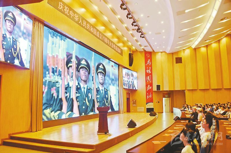 西南石油大學(xué)師生收看國慶慶典直播。 曹正攝
