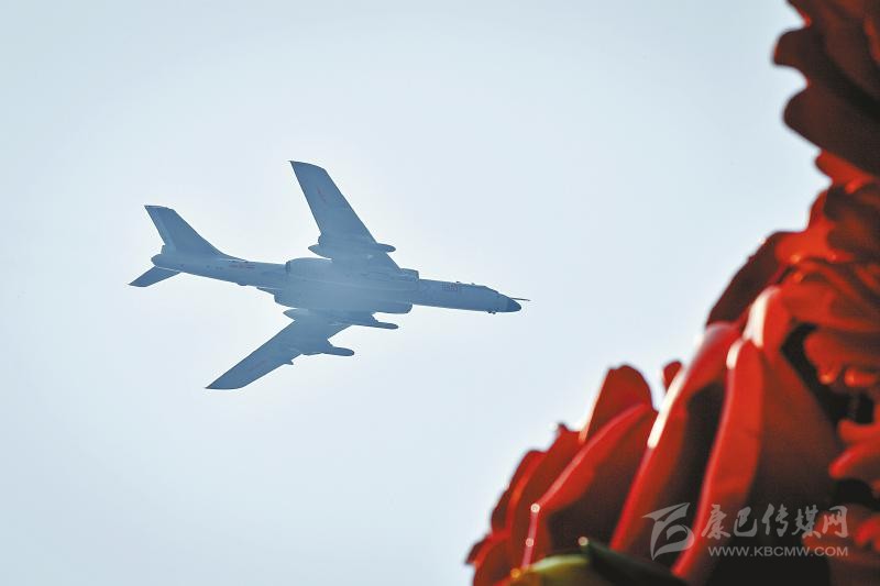 3架轟-6N、6架轟-6K組成的轟炸機(jī)梯隊(duì),1日上午分為3個(gè)3機(jī)楔隊(duì)呼嘯而來。