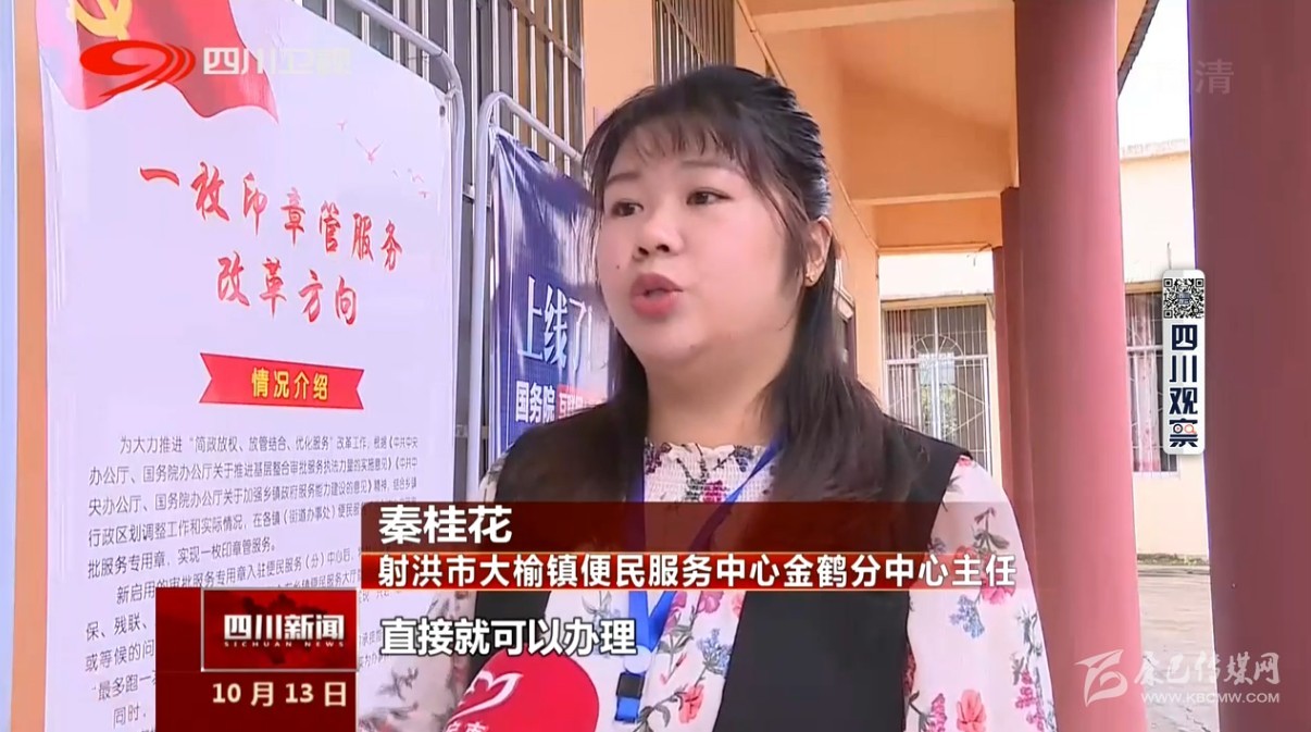 射洪市大榆鎮(zhèn)便民服務(wù)中心金鶴分中心主任秦桂花說:“現(xiàn)在這個(gè)一枚印章整合之后 這邊分中心直接就可以辦理 非常的便民。”